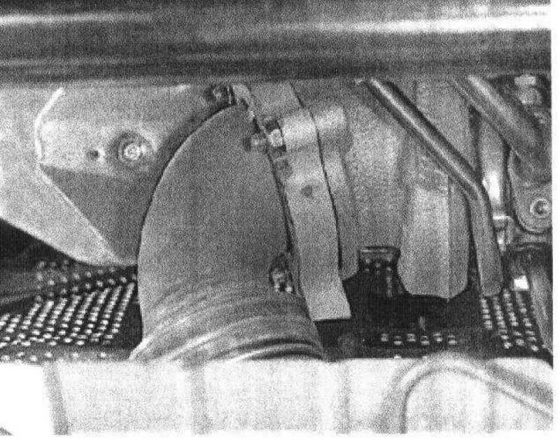 Note! Applies only to B52x4T: Remove the lower rear screw for the heat deflector plate above the Turbocharger (TC)