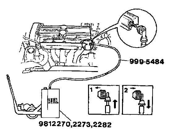 Connect adapter 999 5484 to fuel draining unit 981 2270 , 981 2273 and 981 2282.