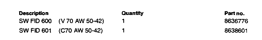 Vehicles within the chassis number range listed above should have SW FID 600, P/N 8636776 or SW FID 601, P/N 8638601 downloaded at the next scheduled service.