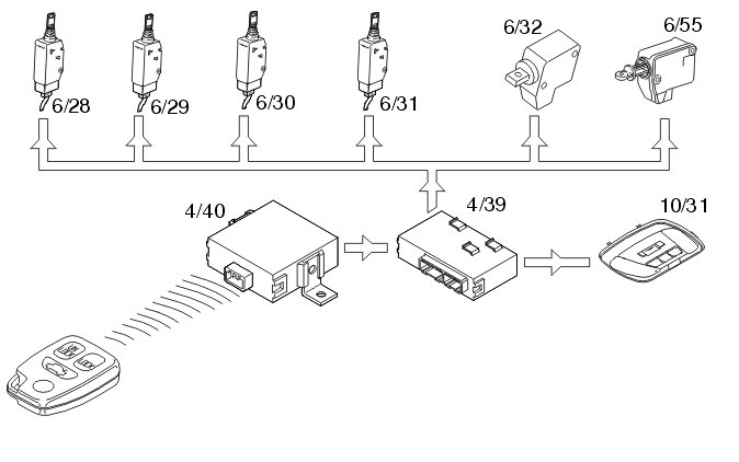 When the system receives the "LOCK" signal from the remote control or the key is turned towards the "LOCKED" position, the doors are locked and the system switches to wait state. During the following 25 seconds, the system monitors whether the driver's door is opened. If this happens, the alarm is disarmed and the doors are unlocked. The locking sequence can be cancelled with the key, remote control or by other action.