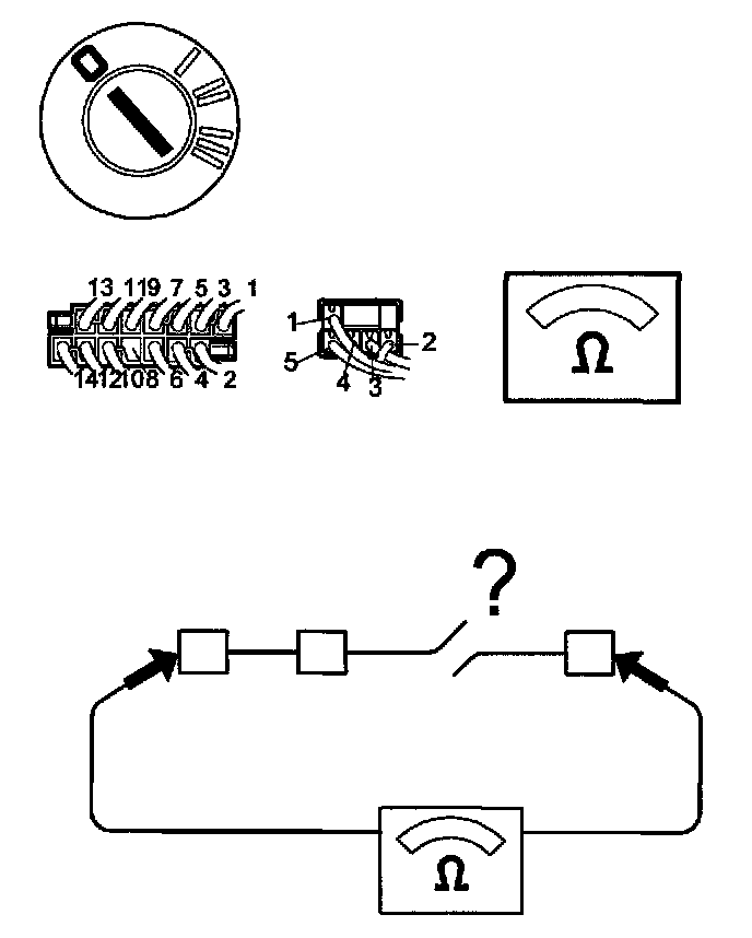 Check the cable between selector switch connector terminal 5 and control module connector terminal 4 for a open-circuit