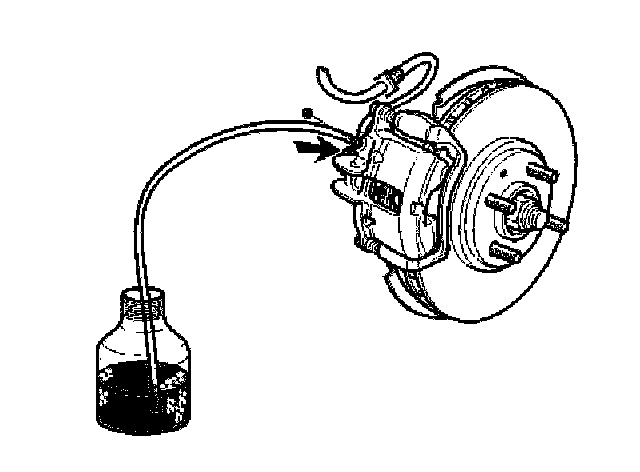 Remove the protective cap from the bleed nipple and connect the transparent hose to the collecting bottle. Open nipple about one turn.
