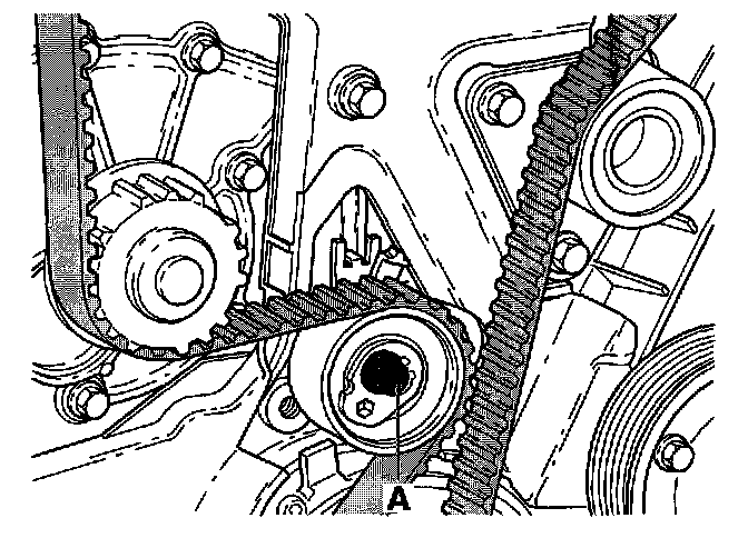 - Remove bolt (A) and take tensioner off