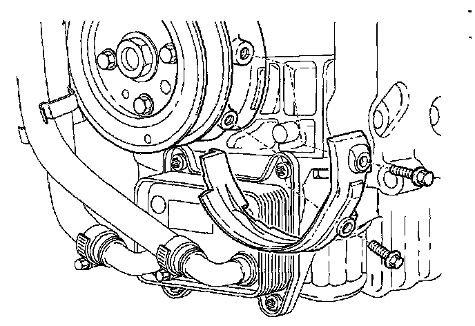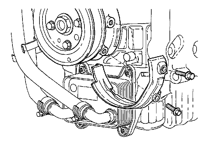 - Remove the four bolts and pull bracket from engine. Lift engine if necessary.