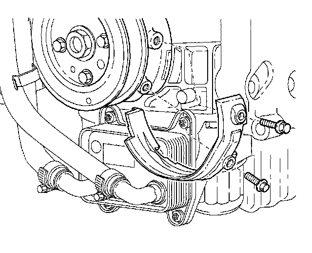 - the metal bracket for the power steering hose on the rotation protection for the auxiliaries belt