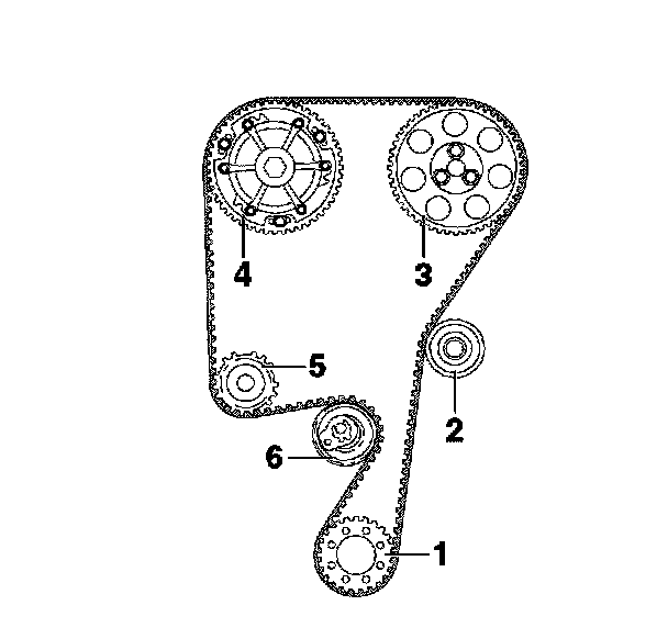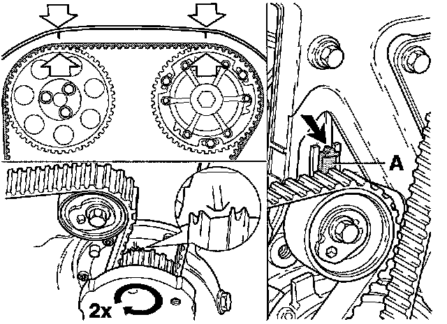 - Turn the crankshaft two turns. Check that the markings on the crankshaft and camshaft pulley correspond.