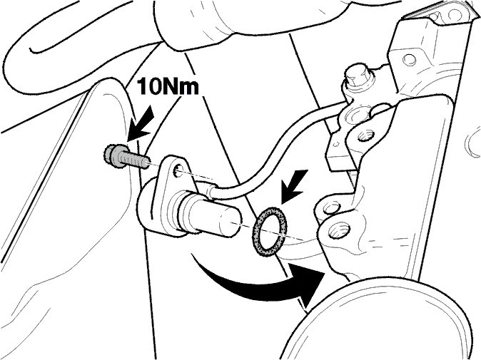 - Place the sensor and tighten the bolt. Tightening torque 10 Nm