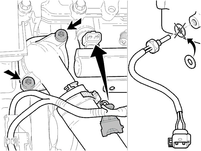 - Install a new sealing ring on the engine coolant temperature (ECT) sensor.