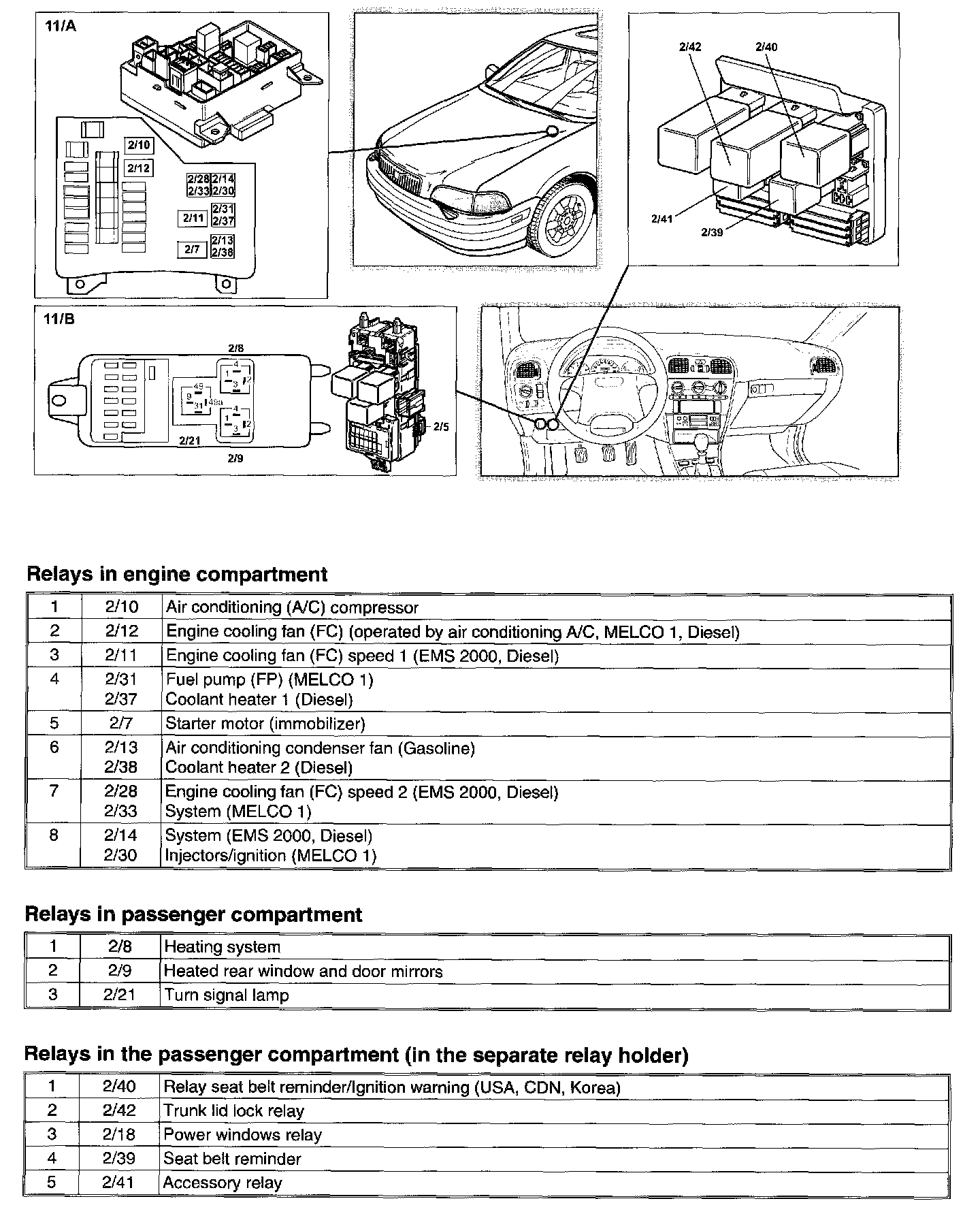 Relays In Engine Compartment And Passenger Compartment: