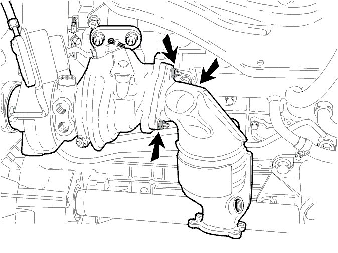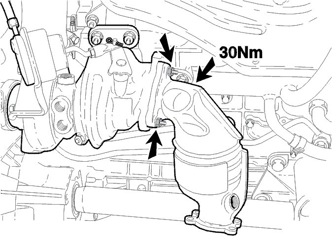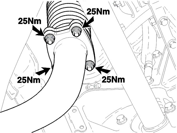 - Secure the front exhaust pipe to the manifold. Tighten the nuts. Tighten to 25 Nm