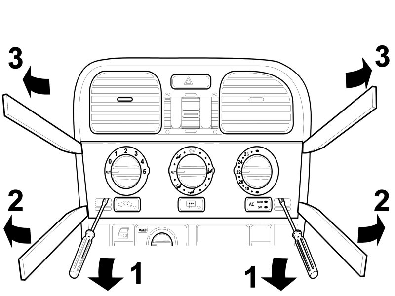 - 3: Press the whole panel upwards slightly. Pull it towards you from the top. (The controls remain on the heater control panel.).
