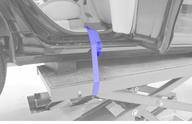 Warning! When dismantling components weighing approximately 100 kg at the rear of the vehicle it must be secured with straps/tensioner bands that run through the rear door openings (alternatively through the front door openings on 2 door cars) and under the rear lifting arms/lifting table.