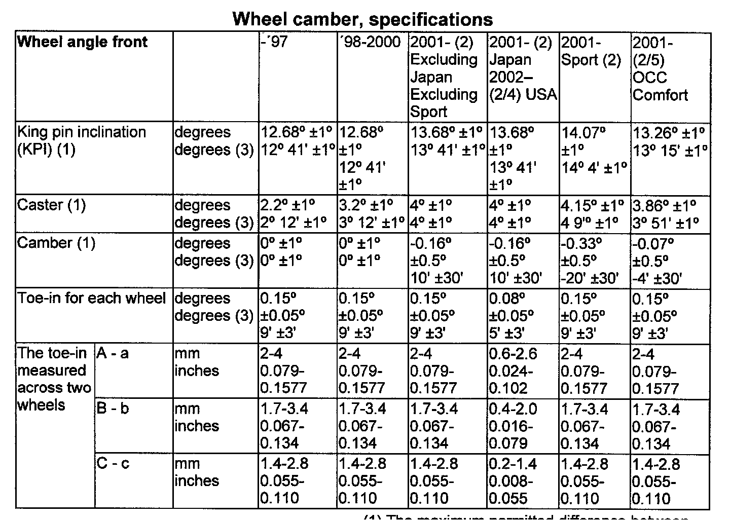 (1) The maximum permitted difference between the right and left wheels is 0.68° or 40'.