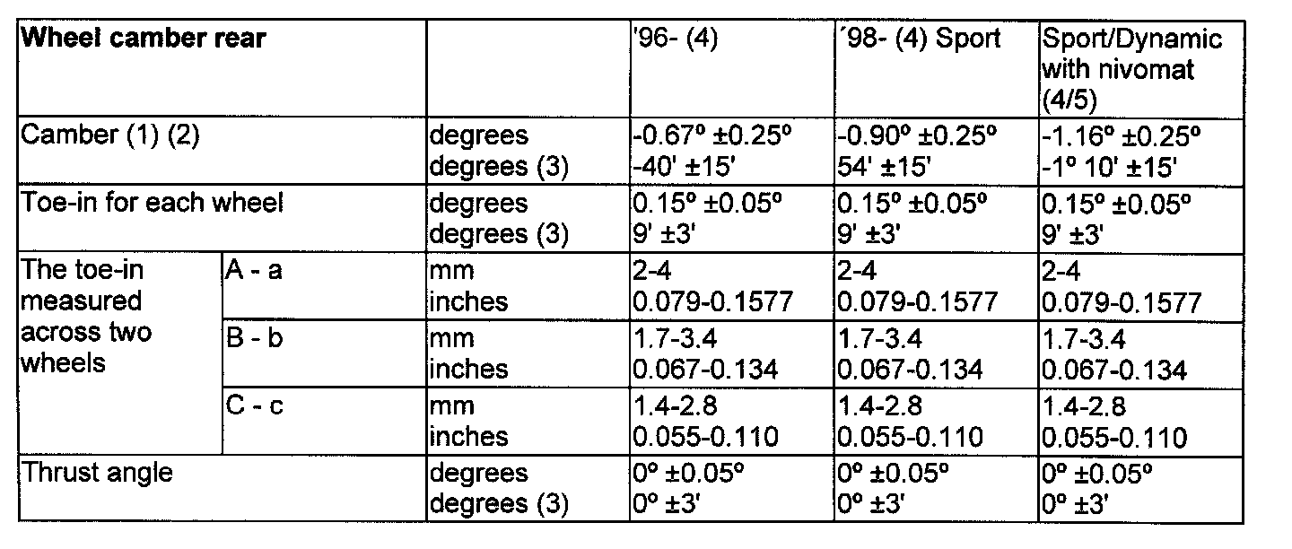 (5) Adjust cars with sport or dynamic chassis equipped with nivomat to these values.