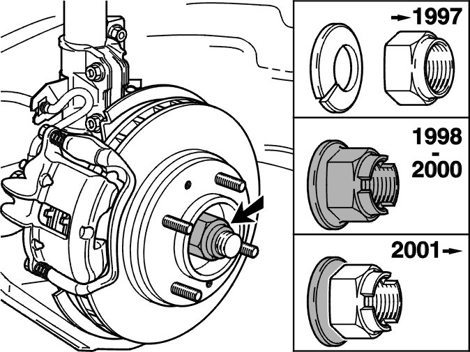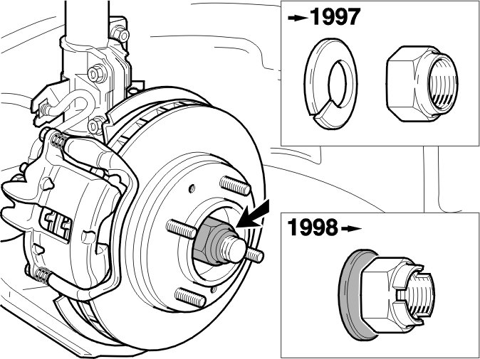 Hint: Applies to 1998-2000: If the lock nut which was installed in step 3 (B) does not remain in place or was replaced during a repair, flanged nut (P/N 3089 6406) must be used with the same tightening torque as for the 2001 - (C) version.
