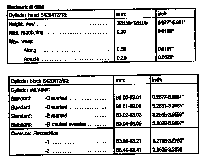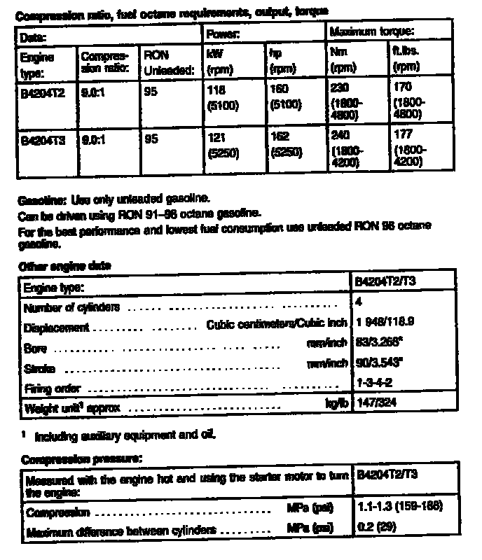 S40/V40 Engine Mechanical Data: