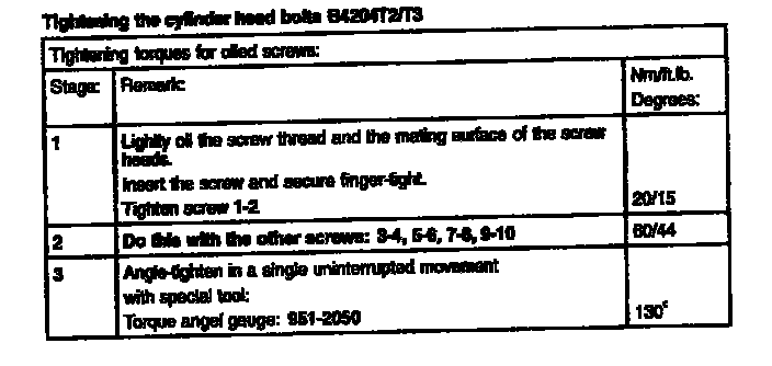 S40/V40 Cylinder Head Torque Sequence: