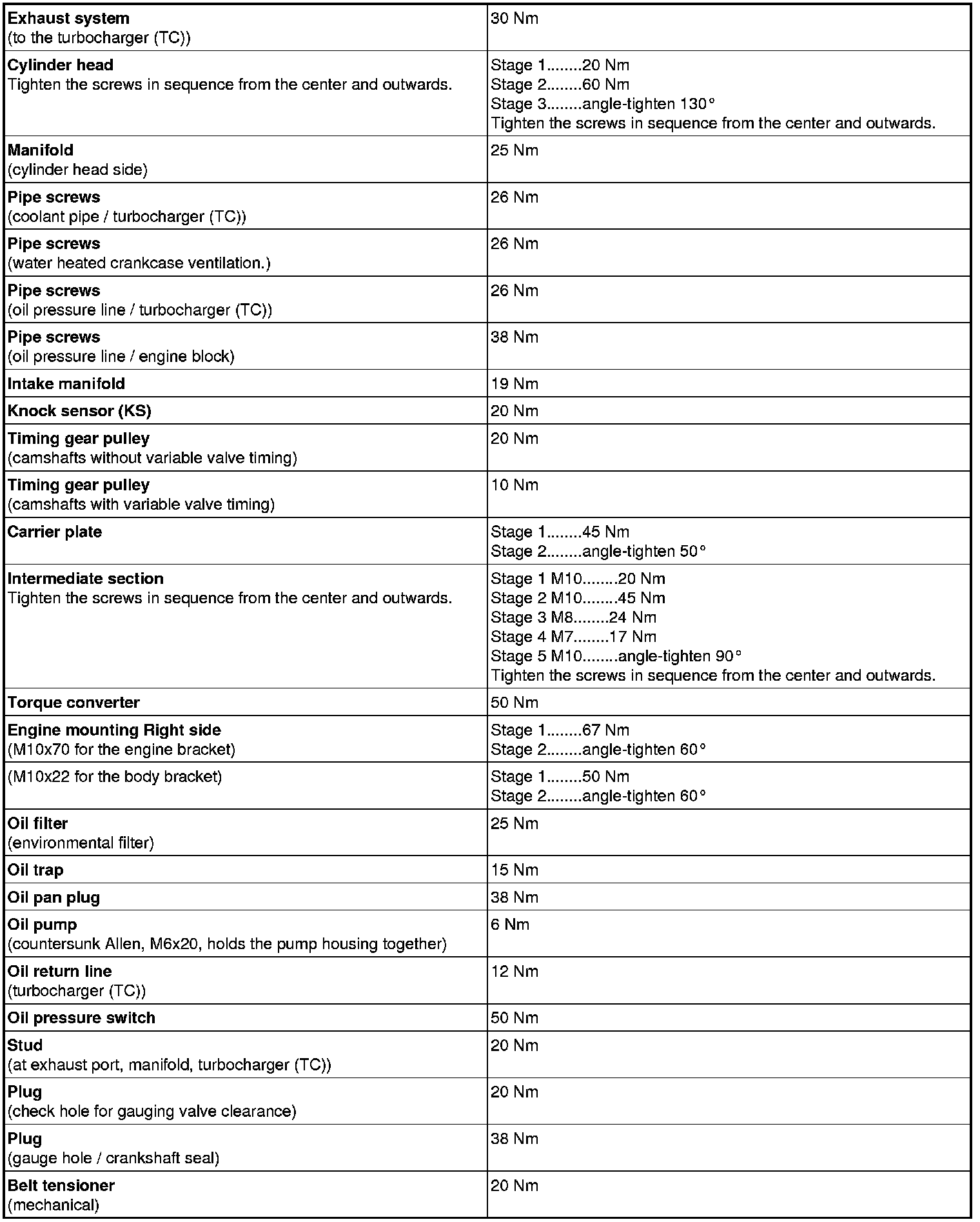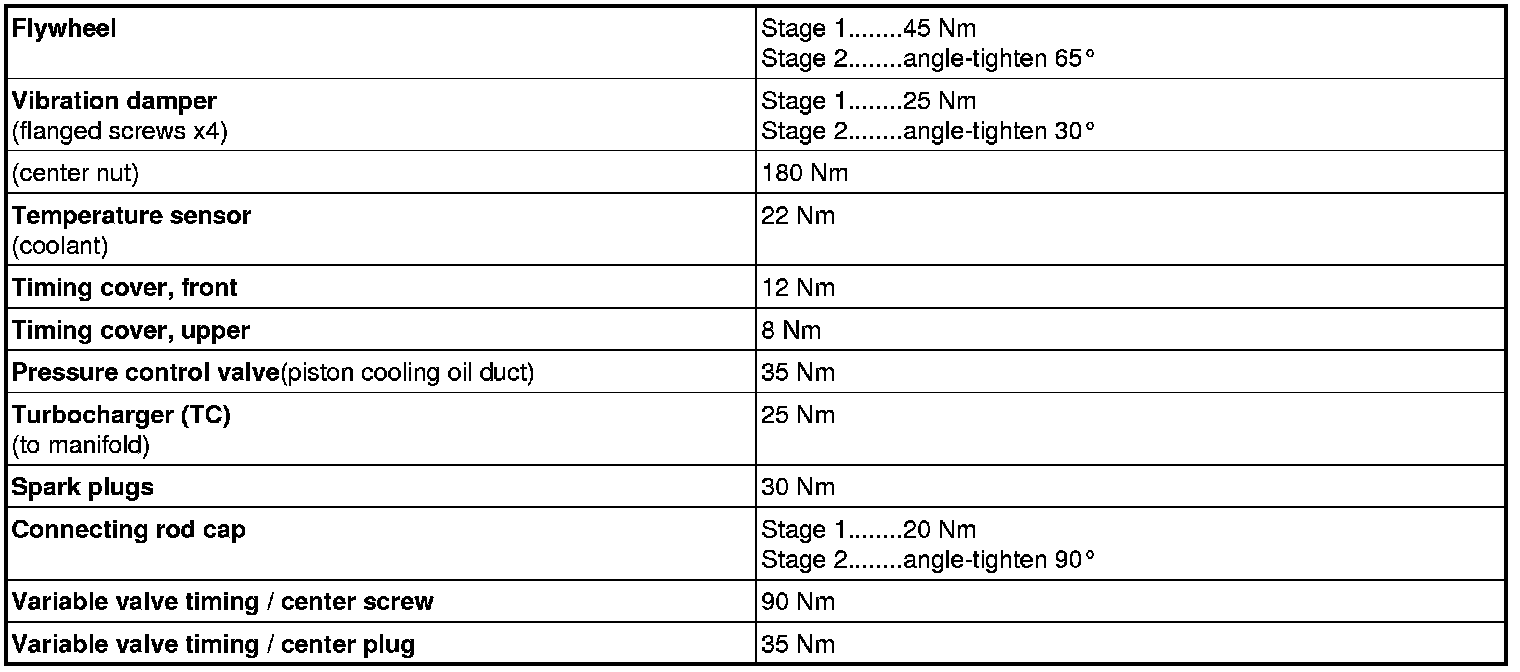 Tightening torques for 4-cylinder gasoline engines