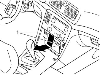 - Remove the left side panel (1) from the centre console by turning the clip and pulling the panel outwards and backwards