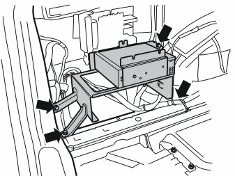 - Disconnect the connectors on the radio. Place the bracket with the radio to one side.