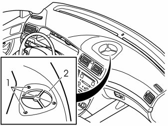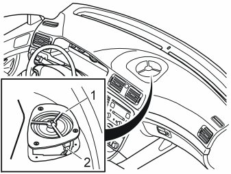 - Carefully remove the loudspeaker grille (1) on the dashboard. Use a weatherstrip tool or similar.