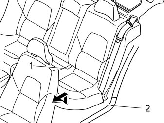 - Remove the seat cushion from the left-hand rear seat.(1). First lift the front edge of the cushion and then pull forwards