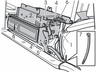 - Clamp the wiring at the existing cable harness (6) using a tie strap.
