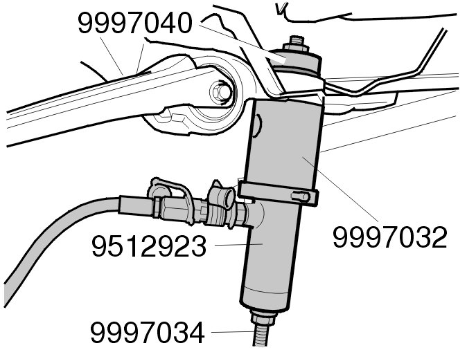 - Install the hydraulic cylinder. Use tool 951 2923 Hydraulic hole cylinder 951 2923 Hydraulic Hole Cylinder with 999 7054 Adapter incl. 2x MC6C M6X12 999 7054 Adapter Incl. 2x MC6C M6X12 , 999 7032 Sleeve 999 7032 Sleeve , 999 7040 Drift 999 7040 Drift and 999 7034 Connecting rod M12X400 999 7034 Connecting Rod M12X400