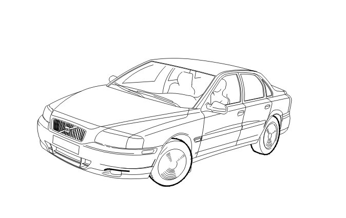 While driving, the ABS control module (1) continuously registers the acceleration and deceleration of the wheels. The wheel sensors (3) on each wheel send this information to the ABS control module. The ABS control module calculates the reference speed of the car using these signals. The ABS control module transmits a signal with the speed of the car via the Control area network (CAN), which is used by other control modules.