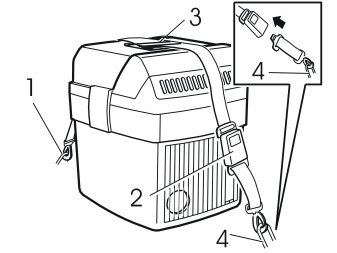 - Lock the straps together. Tighten so that the coolbox is secured in place.
