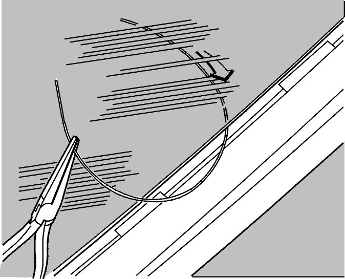 Remove the strips along the A pillars and the roof as described in Weatherstrips and trim strips Weatherstrips and Trim Strips.