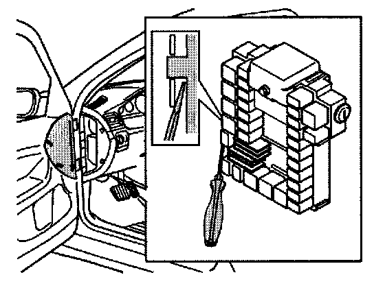 - Insert a screwdriver between the bracket and the relay box. Turn the screwdriver so that the bracket opens out. At the same time, pull the relay box out of the bracket towards the underside of the dashboard