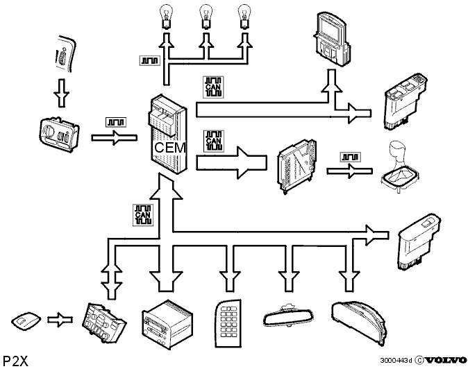 - The Central Electronic Module sends the information onwards as a CAN message on both high and low speed network sectors.