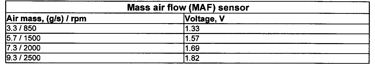Air mass is given in gis and engine speed (RPM) with an unloaded engine at operating temperature. The values should be regarded as approximate.