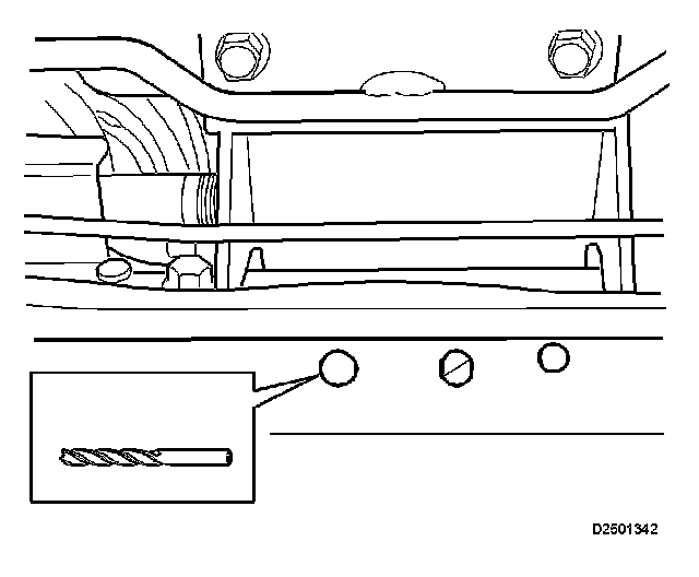 - hole (B) for the heated oxygen sensor wiring using a 5 mm (13/64") drill.
