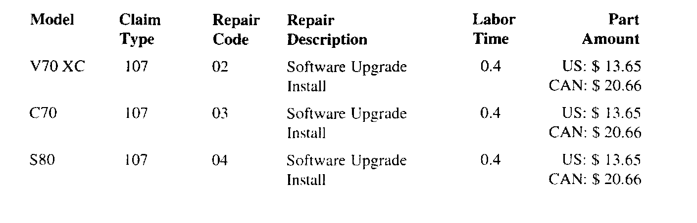 Volvo Cars of North America. Inc. and Volvo Cars of Canada Ltd. have determined that a Service Upgrade is required on certain V70 XC and C70 vehicles, model year 2000 and certain S80 models, model year 2000 and some 2001.