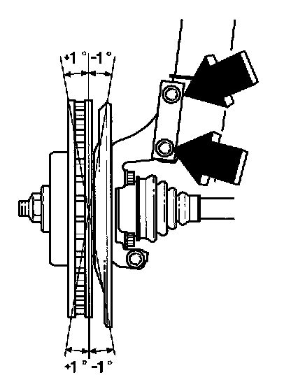 Note! Adjust the camber angle if it lies outside the 0° ± 1° tolerance when checked. The variation between left and right sides must not exceed 1°.