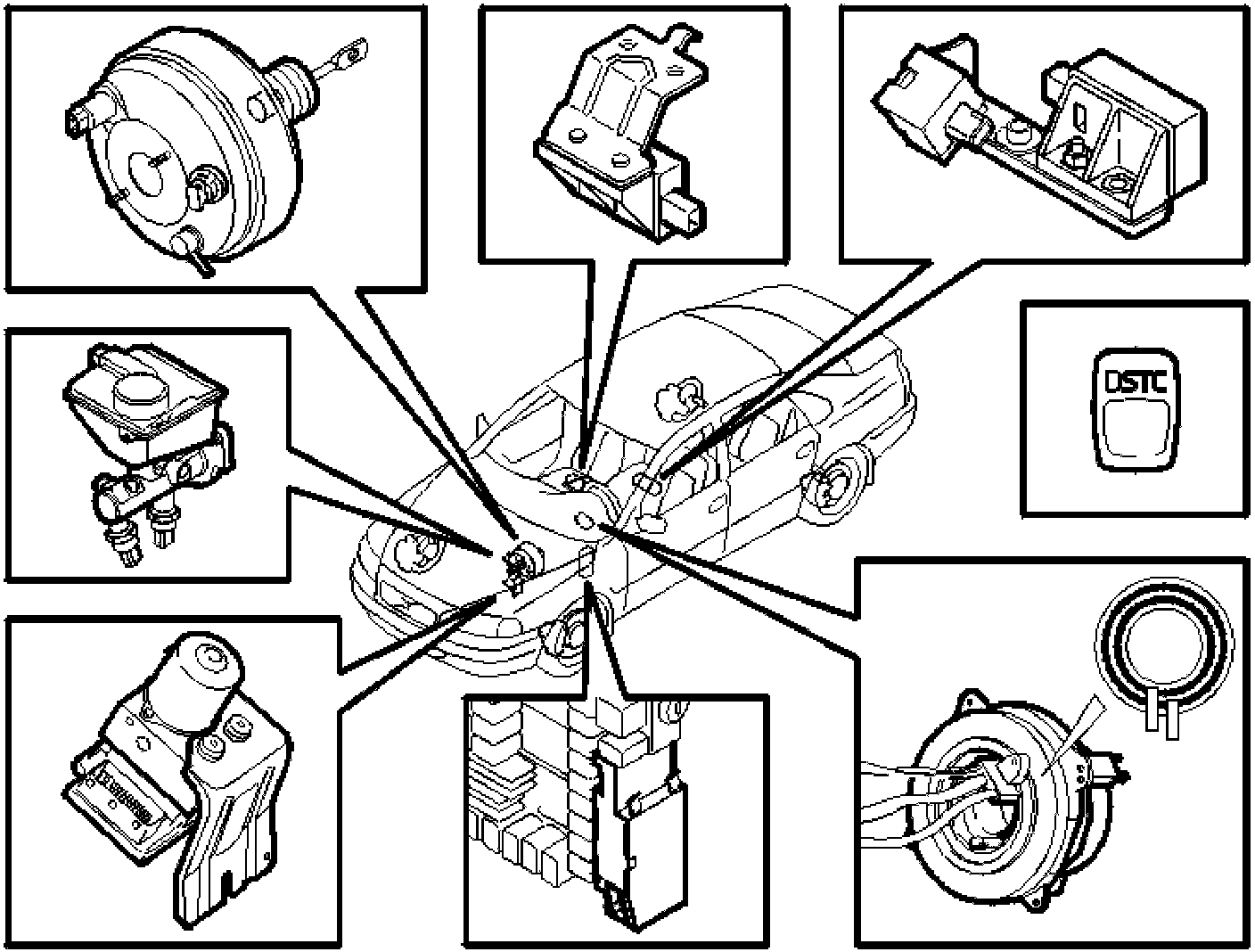 The ABS control module with DSTC uses continuous information from the different sensors in the system to calculate the position of the steering wheel and car. The ABS control module calculates the driving manner of the driver by measuring the steering wheel angle, engine torque, speed of the car and brake pressure. The ABS control module also calculates the behavior of the car by monitoring the steering wheel angle, steering wheel angle speed, yaw rate speed and lateral acceleration. When the differences between the movements of the driver and the behavior of the car exceed a certain point, Active Yaw Control limits the engine torque to maintain lateral stability in all driving conditions. Active Yaw Control also activates the power brake booster and the individual brake control to control the hydraulic modulator separation valves and hydraulic shuttle valves and the inlet and outlet valves which correct the car in the event of a skid.