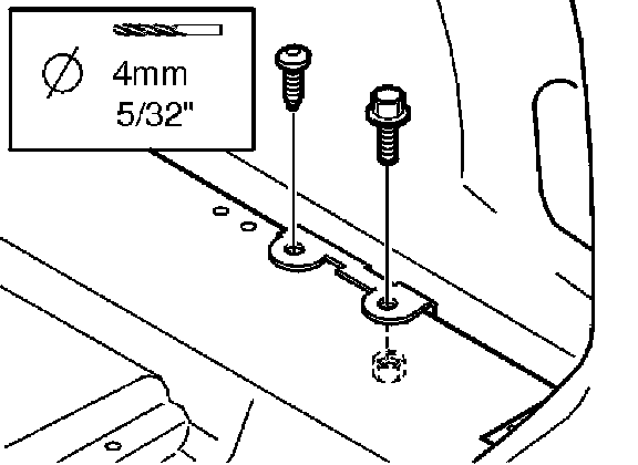 - Drill a Dia. 4 mm (5/32 inch.) hole in the side member, through the front hole in the bracket