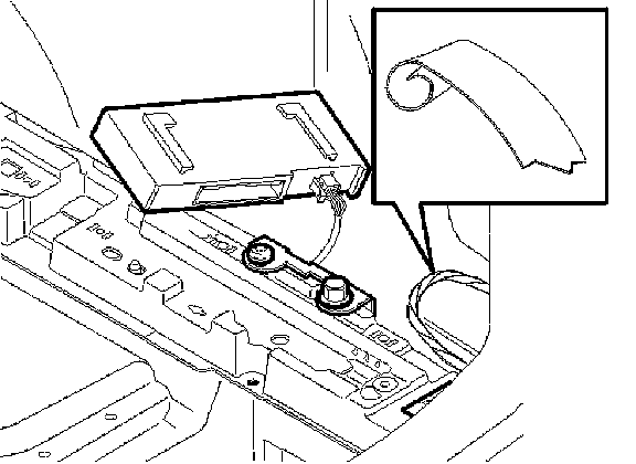 - Remove the pre-routed cable for the accessory electronic module. The cable is taped up at the rear edge of the right-hand rear wheel well