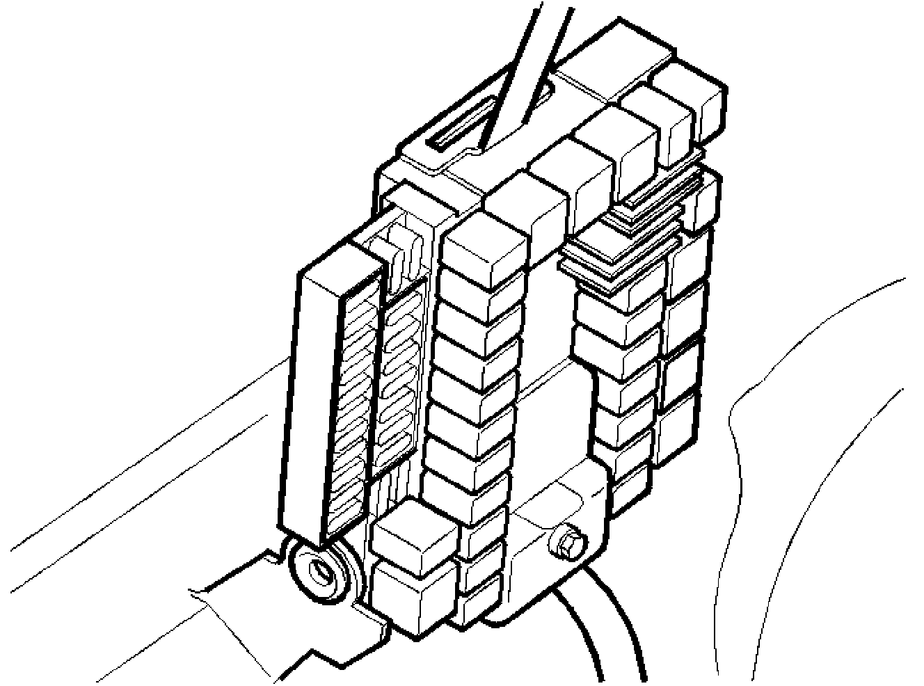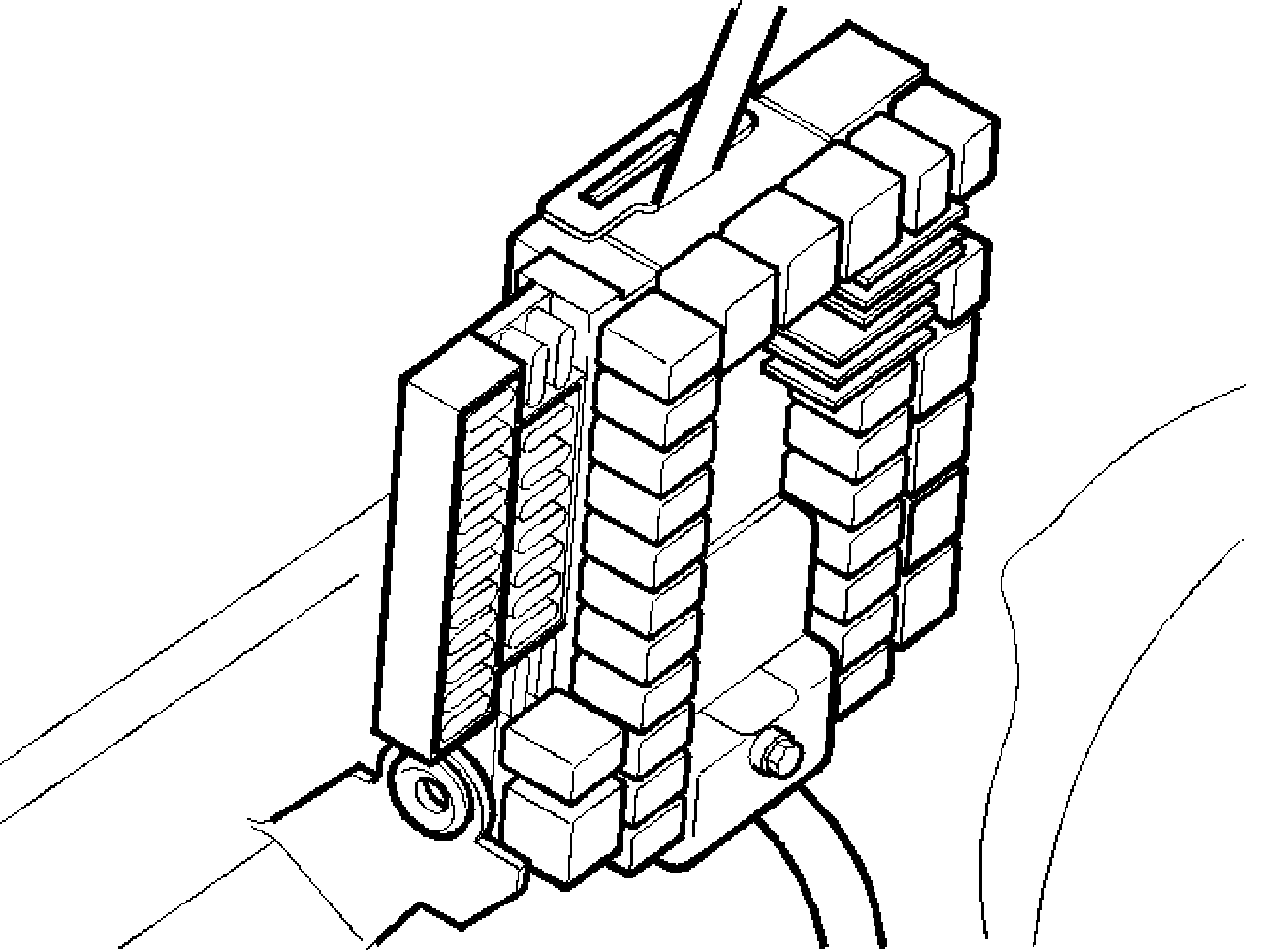 - Install the integrated relay/fusebox. Ensure that the catches on the top engage correctly