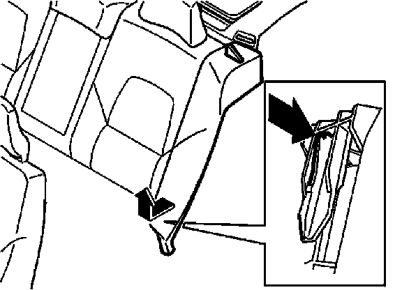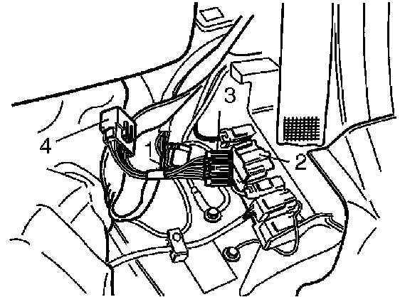 - Remove the connector (1) from the terminal (2) above the cable duct under the rear seat cushion