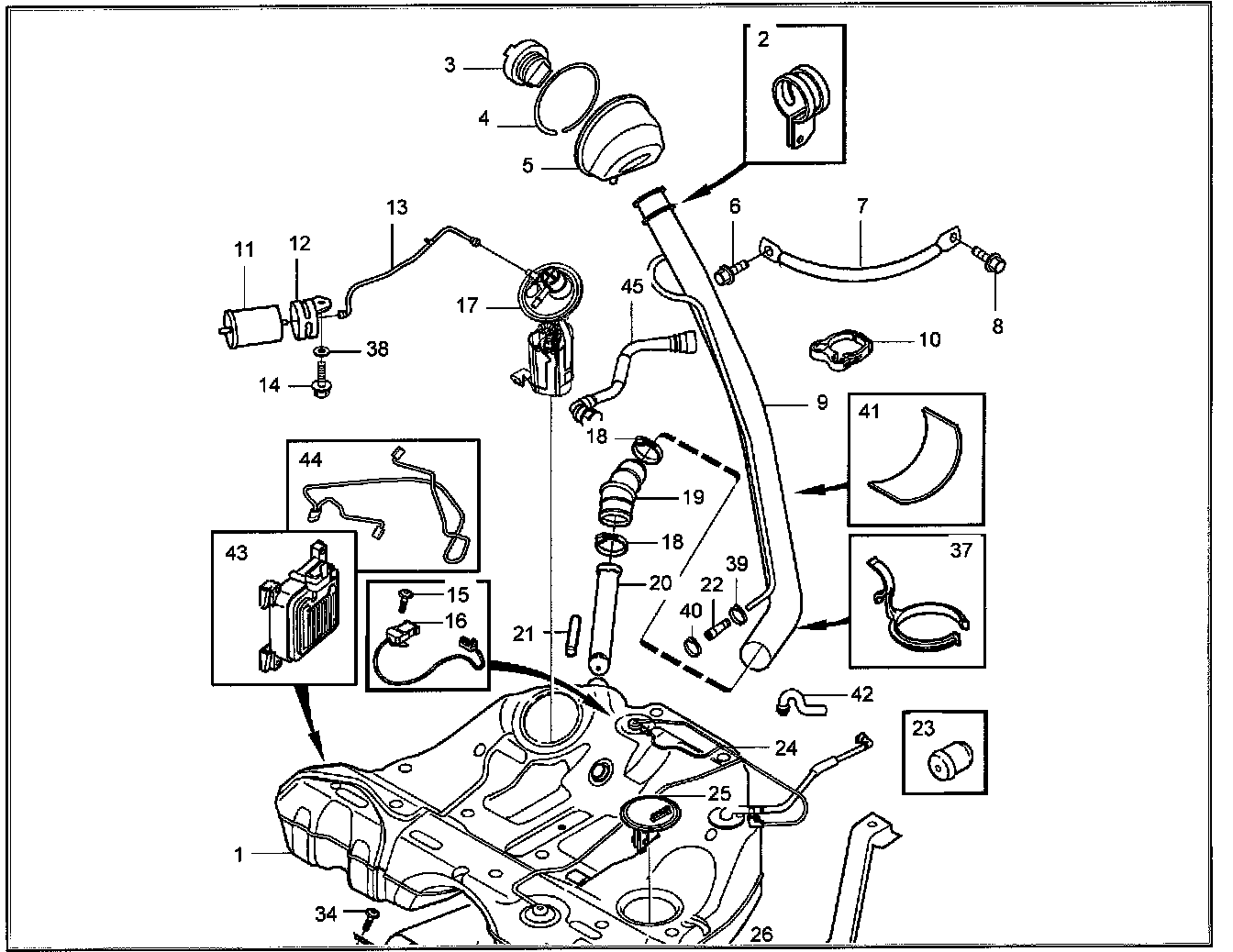 The fuel filter is located behind the driver side rear wheel near the fuel tank.