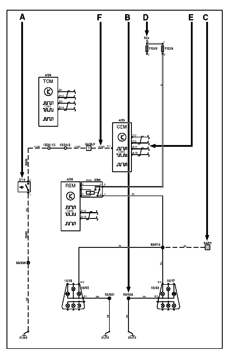 Today's cars are equipped with a CAN network, which transmits information. Connections to this network are shown in their entirety on the respective wiring diagrams. Complete information on CAN communication is can be found in "Data communication".