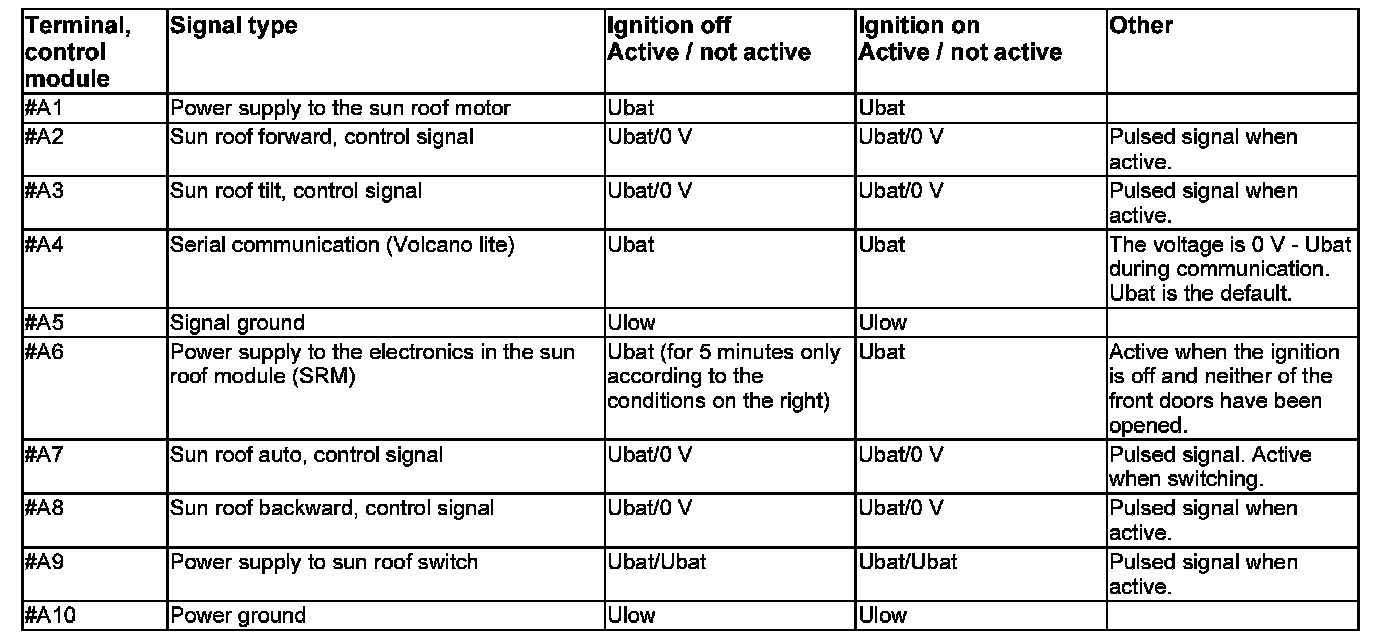 The following values are measured between the relevant terminal in column 1 and terminal #A5 (signal ground) unless otherwise stated.