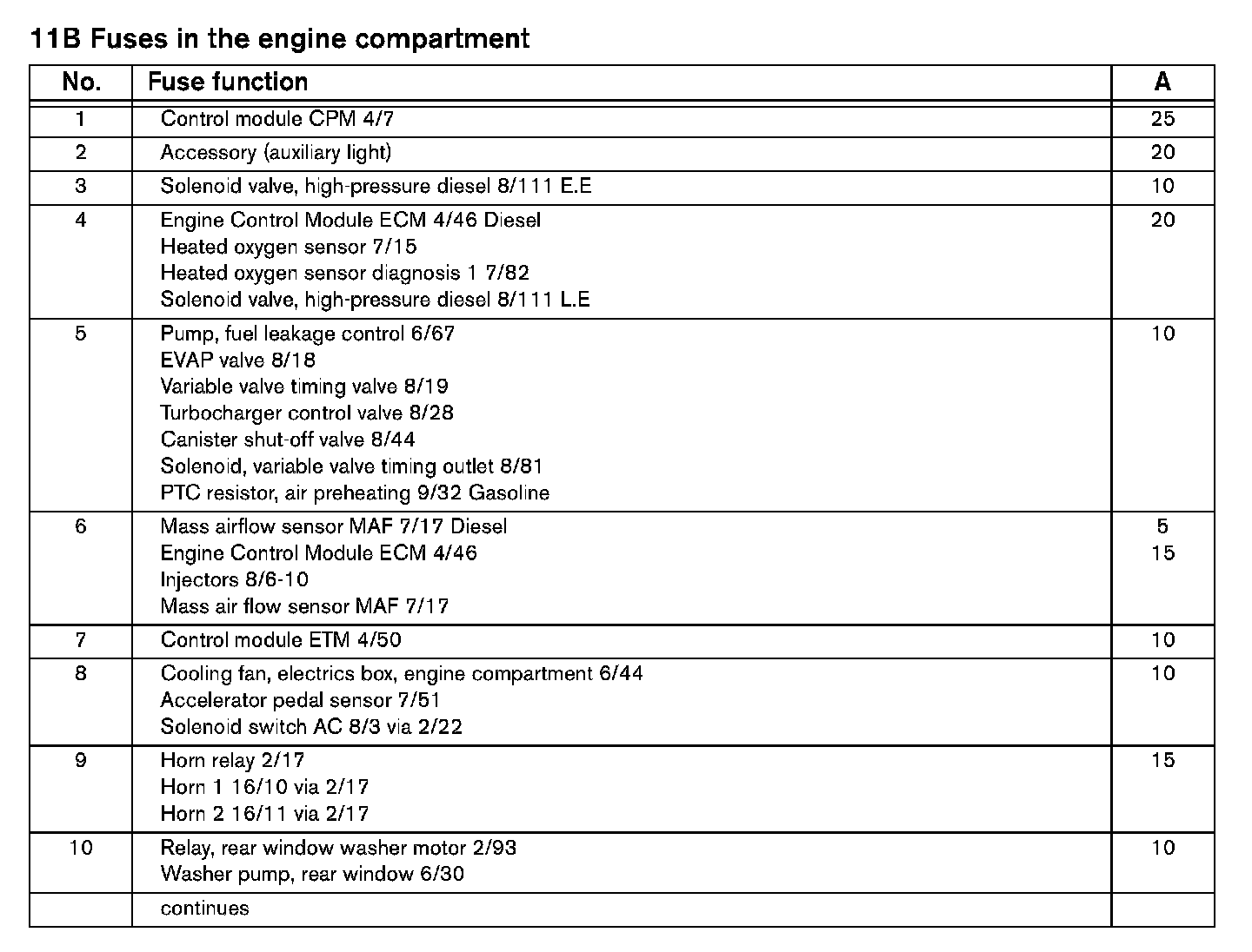 Fuses 11B/1-10: