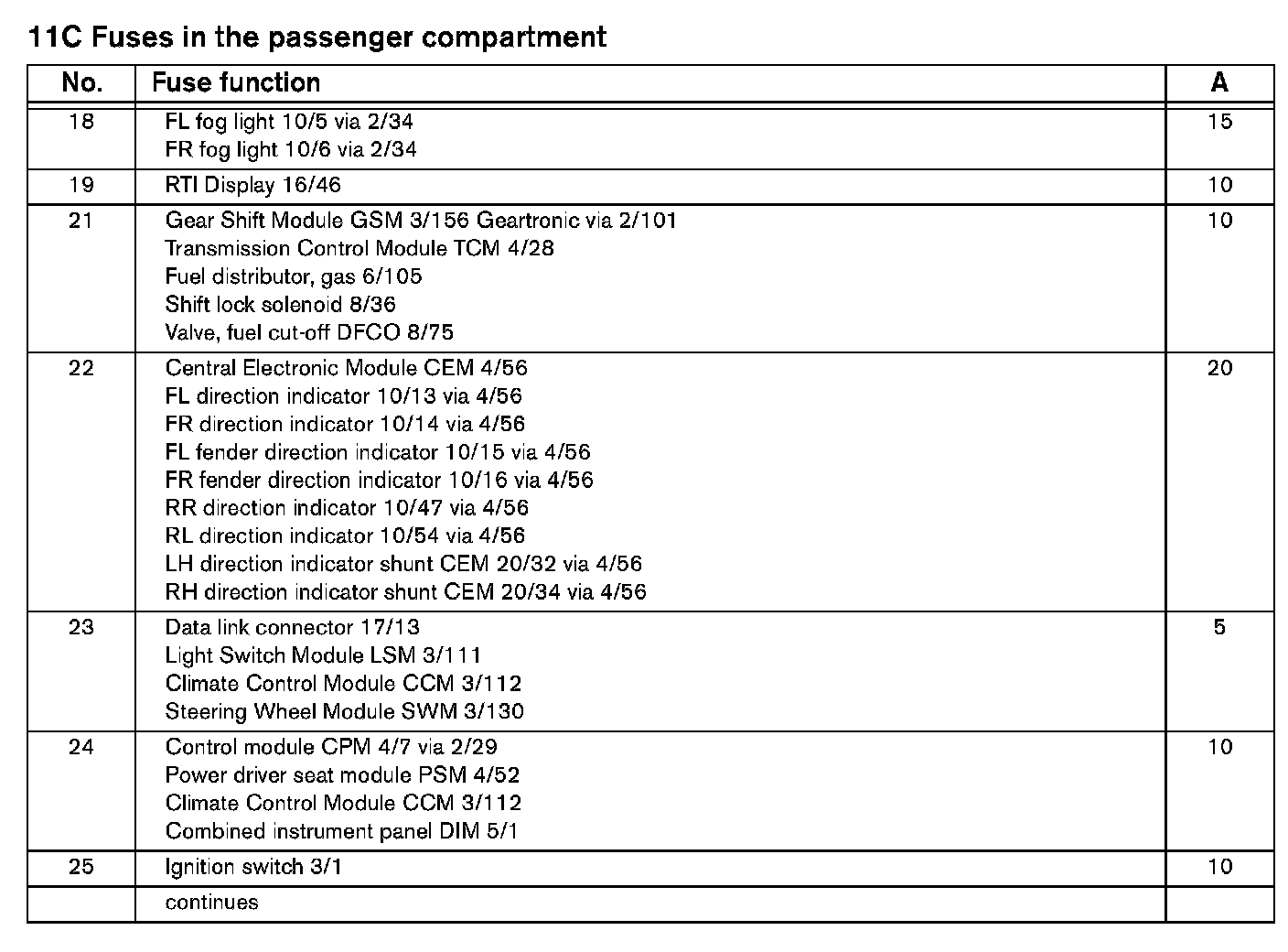 Fuses 11C/18-25: