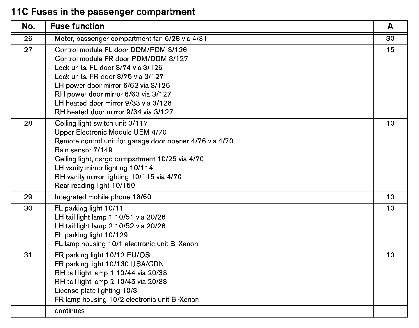 Fuses 11C/26-31: