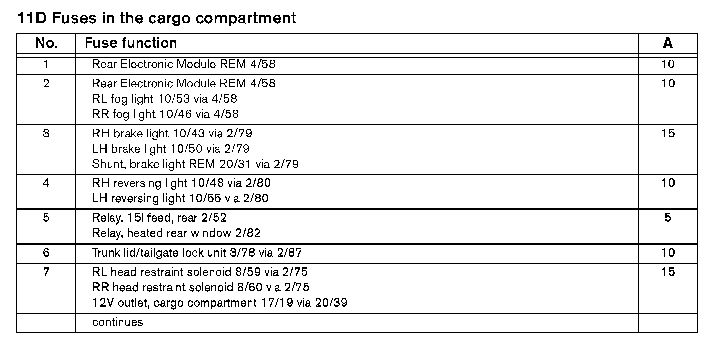 Cargo Compartment Fuses: