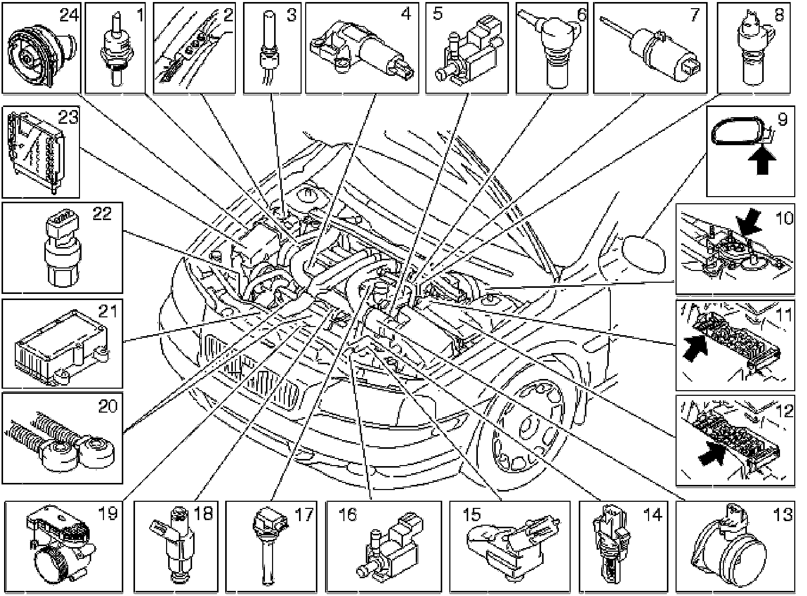 Not all the following components are necessarily in the car. The components vary between engine types.